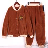 Pajamas for Women Autumn and Winter Thick Flannel Long Section Home Cute Suit Cartoon One-piece Warm Pajamas Loose