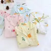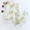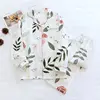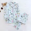 QWEEK Cotton Pajamas for Women Flower Print Pijamas Casual Soft Sleepwear Pyjamas Two Piece Set Spring Autumn Home Clothes Cute