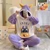 QWEEK Pajamas for Women Kawaii Cow Pijamas Winter Flanne Pyjamas Loungewear Purple Pink Blue Girls Home Clothes Pour Femme Warm