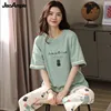 Pajamas Women Summer Autumn Thin Section Cotton Short-sleeved Trousers Pijamas Two-piece Korean Casual Plus Size Sleepwear Suit