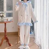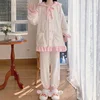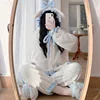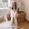 Japanese Winter Kawaii Bow Pajama Set Soft Girl Cute Coral Fleece Rabbit Ears Coat Women Trousers Warm Thickened Plush Home Wear