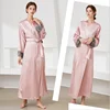 Autumn and winter long ladies nightgowns Comfortable lace up imitation silk nightgown bathrobes cardigan long sleeved home wear