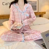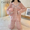 CAIYIER Plaid Pyjamas Set Female Spring and Autumn Long Sleeve Trousers Loungewear Lovely Grid Sleepwear Women Homewear Suit