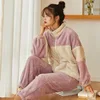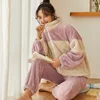 Flannel Sleepwear Long Sleeve Nightgown Homewear Pyjamas Set Winter Thick Warm Pajamas Sets For Women sudaderas con capucha