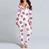 NEW Women Pajamas Onesies Button-down Front Functional Buttoned Flap Adults Pyjama V-neck Long Sleeve Jumpsuit Female Sleepwear