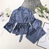 2021 Home Suit For Women Sleepwear Loose Flare Pants Three Quarter Sleeve Satin Robe Sets Bathrobe For Home Wear Fashion