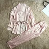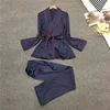 High Grade Silk Satin Women Pajama Set Long Sleeve Robe And Pants Female Autumn Bathrobe Suit Elegant Sleepwear Homewear
