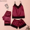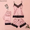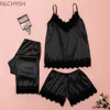 Women's Sleepwear Sexy Satin Pajama Set Black Lace V-Neck Pyjamas Sleeveless Cute Cami Top and Shorts Sexy Lingerie Homewear