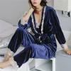 Autumn Winter Warm Pajamas Set Women Sleep Set Deep Gold Velvet Sexy Homewear Pijama Women Pajama Sets Long Pant Set Robe Women
