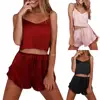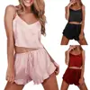 2Pcs Sexy Pajama Set Women Solid Color Satin Silk Spaghetti Strap Top Hot Shorts Pajama Women Sleepwear Nightwear Femme Pijamas