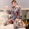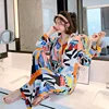 Spring Summer Satin Letters Leopard Print Homewear Sleepwear Women's Home Suit Sexy Pajamas Pijama Pyjama Homewear домашняя