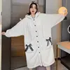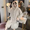 Autumn Winter White Flannel Long Robe Thick Warm Sleepwear Nightgown Women Casual Kimono Bathrobe Loose Home Wear