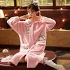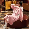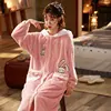 Women Hoode Bathrobe Winter Thicken Warm Flannel Pink Print Bath Robe Night Dressing Gown Nightgown