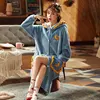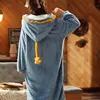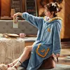 Autumn And Winter Women Blue Flannel Sleepwear Thick Hoode Bathrobe Night Gown Home Service Pijama