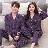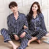 Women Men Pyjamas Suit Spring Couple Striped Print Pajamas Long Sleeve Pijamas Satin Home Clothing Casual Sleepwear