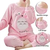 2021 Winter Pajama Women Korean Sleepwear Cute Cartoon Flannel Pajamas Set Velvet Warm Pijama Round Neck Pyjama Homewear Women