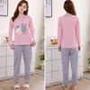 2021 Cartoon Printed Long-sleeved Women's Pajamas Set Three Cat Print O-neck Pajamas + Sleep Pants New