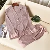 Leopard Print Women Pajama Set Ice Silk Soft Touch Long Sleeve Suit Pyjamas New 2021