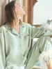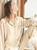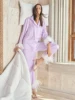 Solid Color Sleepwear Women's Robe With Feathers Single Breasted Turn Down Collar Women Sleeping Clothes Set Satin Pajamas Sets