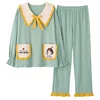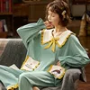 2021 Autumn and Winter New Girly Pajamas Can Be Worn Outside Home Clothes Doll Round Neck Drawstring Cotton Suit Pajamas Solid