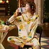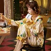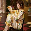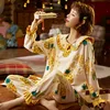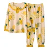 2021 Autumn New Cute and Cute Pineapple Print Pajamas Women's Cotton Doll Lapel Pullover Suit Home Service Robe Sets Cotton