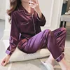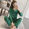 Spring and Autumn New Ladies Plus Fat Large Size Lapel Cardigan Simulation Silk Pajamas Couple Fashion Casual Home Wear