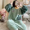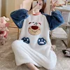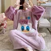 Disney Nightdress Female Plush Loose Flannel Portable Homewear Kawaii Cartoon Round Neck Thickened Warm Long Sleeved Pyjamas