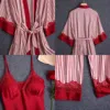 FAKUNTN Women 3 Pieces Silk Satin Pajama Set Sexy Lace Sleepwear Fashion Striped Pyjamas Cami And Pants With Chest Pads Homewear
