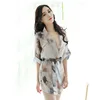 Chiffon Women Robe Spring Summer Robes Woman Bathrobe Polyester Robe Femme Flower Print Sexy Nightgown Silk Lingerie