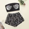 Women Summer Skeleton Skull Camisole Shorts Pajama Sets Female Sexy Sleevless Crop Vest+Elastic Waist Short Pants Sleepwear 2pcs