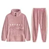 Coral Velvet Pajamas Women's Autumn and Winter Cute Velvet Pajamas Flannel Home Wear Warm Suit sleep tops