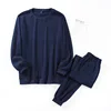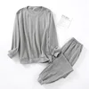 New Spring and Autumn Couple Waffle Plaid Pajamas, Long-sleeved Trousers, Loose Men's and Women's Home Service Two-piece Suit