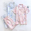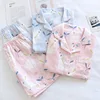 Japanese New Style Pajamas Two-piece Female Summer Cotton Gauze Short-sleeved Shorts Cute Cartoon Thin Large Size Home Service