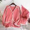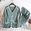 Japanese New Spring and Autumn Ladies V-neck Cotton Suit Simple Long-sleeved Knitted Pajamas Home Service Autumn and Winter