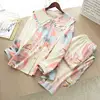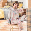 Spring and Autumn New Ladies Pure Cotton Knitted Pajamas Suit Simple Big Flower Doll Collar Home Service Women Long Sleeves