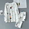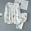 Japanese New Ladies Spring and Summer Cotton Crepe Pajamas Two-piece Long-sleeved Trousers Cute Plant Printing Home Service Set