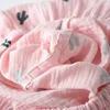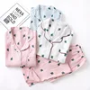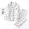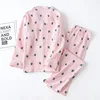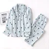 Japanese Cute Ladies Pajamas Two-piece Long-sleeved Trousers 100% Cotton Crepe Casual Plus Size Home Service Lapel Suit Women