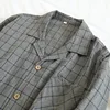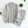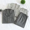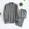 New Japanese Four Seasons Couples Long-sleeved Cotton Home Service Suits Men's Large Size Simple Grid Children Spring and Autumn