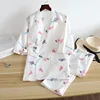 Japanese Kimono 2-piece Pure Cotton Gauze Ladies Pajamas Suit Spring and Summer New Tops + Trousers Home Service Suit Plus Size