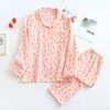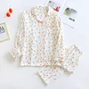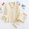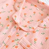 New Spring and Summer Ladies Pajamas Long-sleeved Trousers 100% Cotton Crepe Cute Little Orange Floral Cardigan Home Service Set
