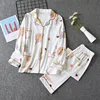 Japanese New Style Pajamas Ladies Spring and Summer Pure Cotton Long-sleeved Trousers Cute Thin Cotton Home Service Suit Women