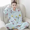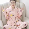 The New Pajamas Coral Fleece Cardigan Leisurewear Suit Warm Qiu Dong Cartoon Flannel Women Sleeve Length(cm) Collar Length
