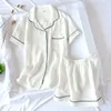 Japanese-style New Summer Ladies Cotton Double-layer Crepe Gauze Short-sleeved Shorts Pajamas Suit Large Size Home Service Women