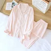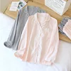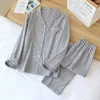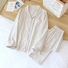 Summer New Couple Vertical Stripes Pajamas Two-piece 100% Cotton Long-sleeved Men's Simple Casual Home Wear Women