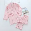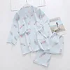Japanese Kimono Ladies Spring and Summer Pajamas Two-piece Three-quarter-sleeved Trousers Cotton Crepe Lace Home Service Set