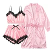 New 3 Pieces Women Pajamas Sets Faux Silk Pajamas Sleepwear Sets Elegant Sexy Lace Fashion Casual Home Clothes Nightwear
