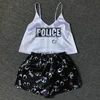 Police Print Pajama Sets Pattern Women Pajamas Strap Sleeveless Sexy Sleepwear Set Female Summer Night Wear Home Suit