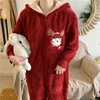 QWEEK Kawaii Elk Christmas Hooded Onesie Women Pajamas Winter Warm Pijamas Cute Cartoon Embroidery Sleepwear Pyjamas Homewear