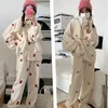 Pajamas Cute Pijama Set Kawaii Christmas Pjs Suit Womens Winter Coats Pant Sets Home Woman Clothes Warm Family Pants Pieces 2PCS