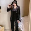 Long Sleeved Golden Velvet Pajamas Women's Autumn Winter Plush Home Clothes 2021 New Warm V-neck Solid Color Sports Suit